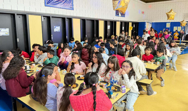 Este viernes algunos estudiantes disfrutaron de un desayuno especial con nuestra directora Mrs. Davis, para celebrar que superaron sus objetivos en el último test de MAP.