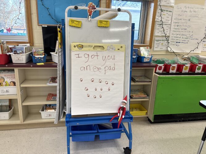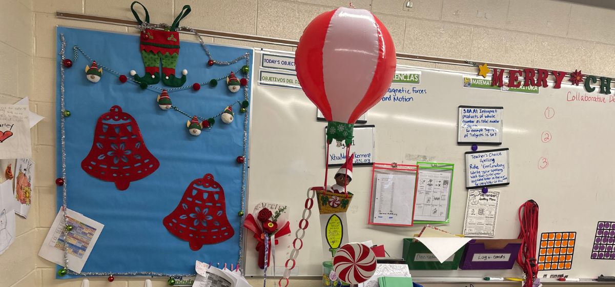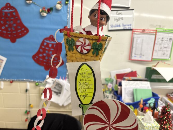 Many classrooms in Oak Park have been visited by elves to make sure the students are on the nice list this year. Some of the elves have been getting into mischief, while others have simply been hiding around the classroom. Take a look at some of our elf friends.