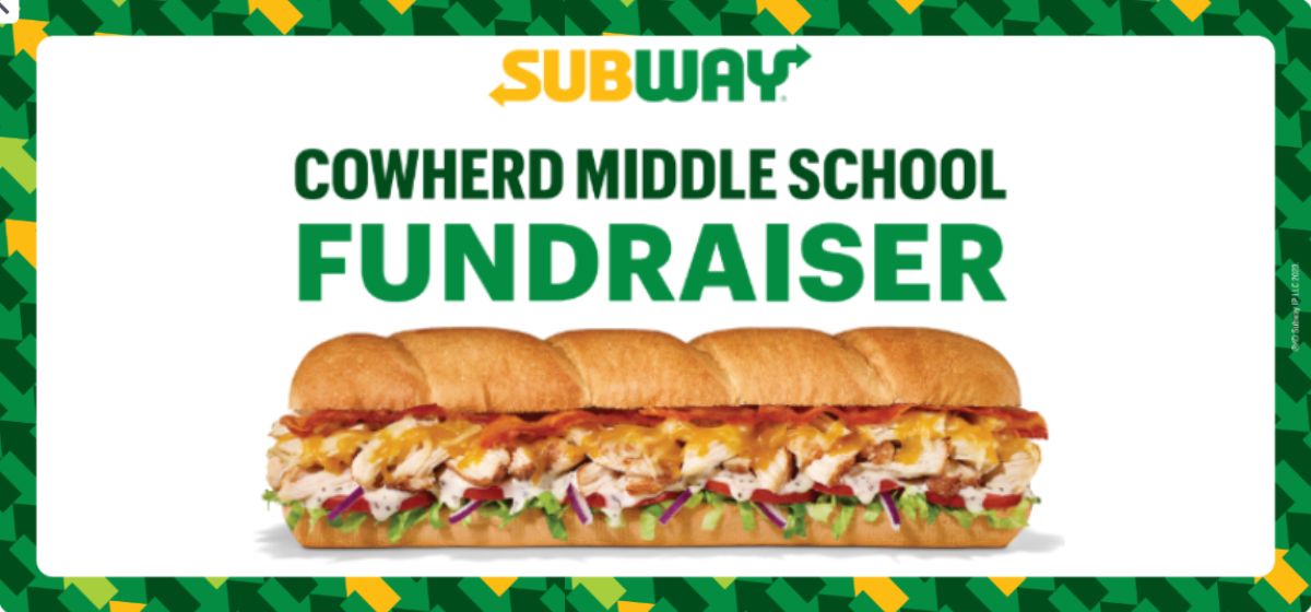 Come support Cowherd Middle School at our Subway Fundraiser! Details are on the flyer below. We hope to see you there!